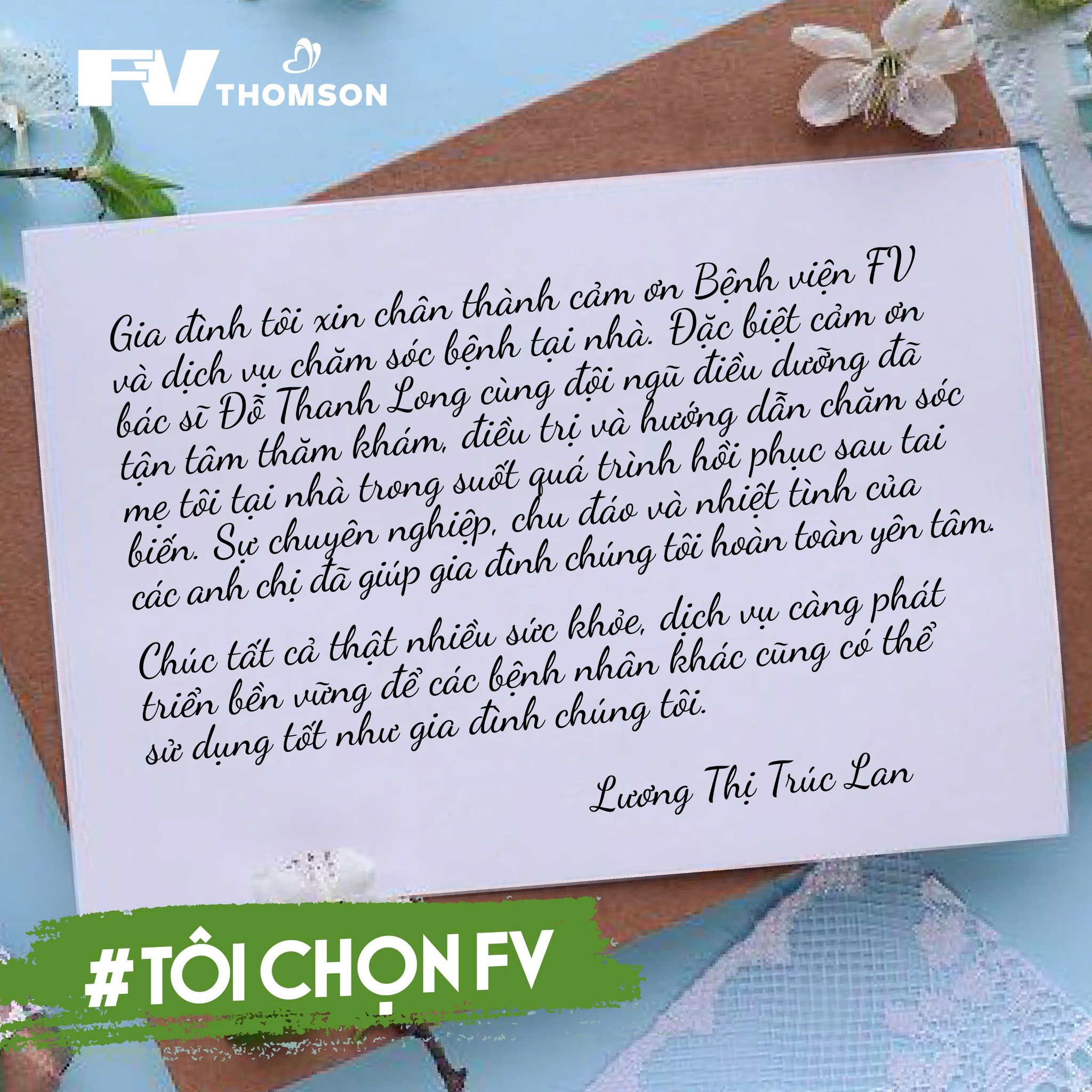 “CHÚNG TÔI SẼ LUÔN GHI NHỚ SỰ TỬ TẾ VÀ TINH THẦN CHUYÊN NGHIỆP CỦA CÁC BÁC SĨ FV” ✍️ ✍️ “Gia đình chúng tôi vô cùng biết ơn trước sự phối hợp nhịp nhàng, sự chăm sóc tận tâm và chu đáo mà cha tôi đã nhận được từ tất cả các anh chị […]