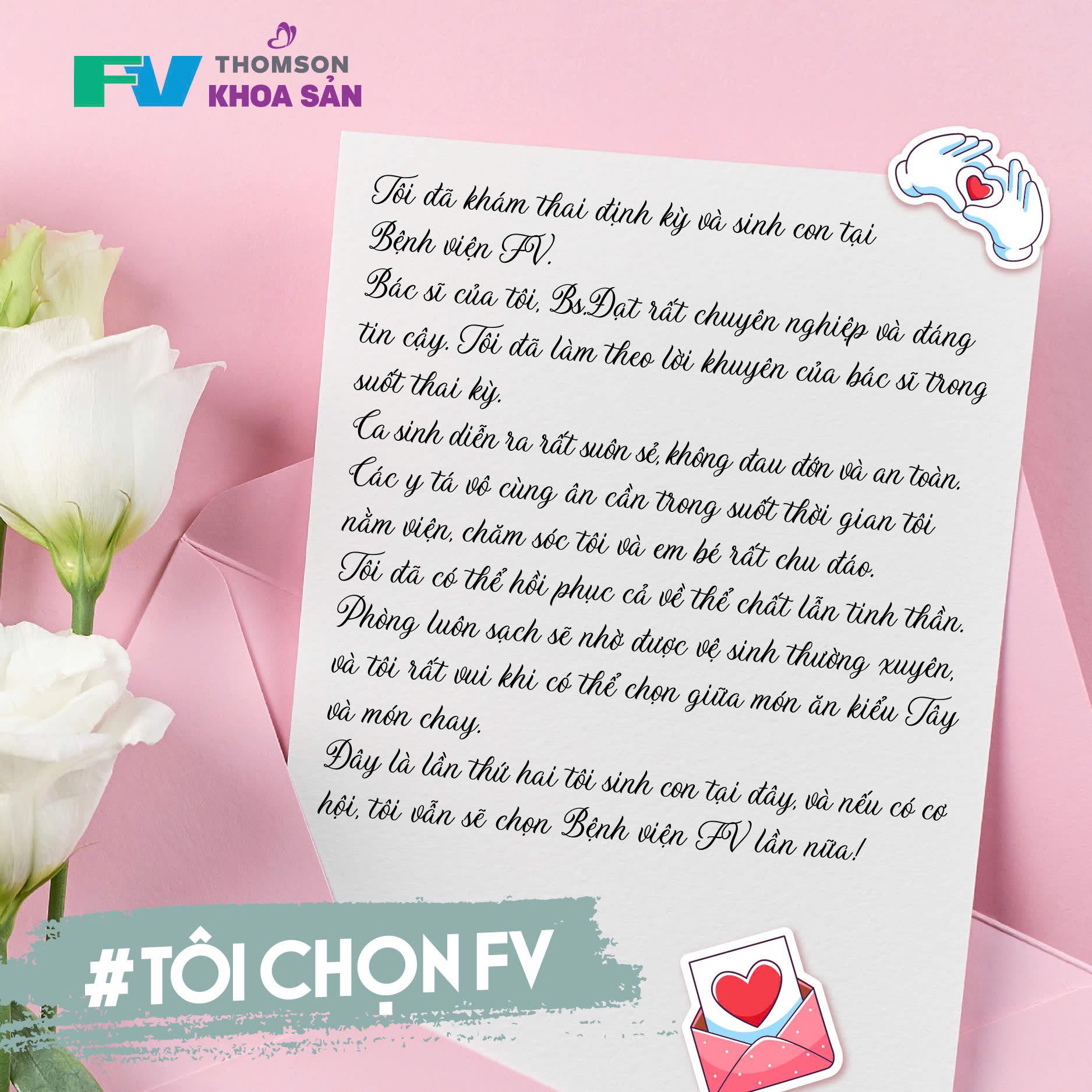 Tại Bệnh viện FV, chúng tôi hiểu rằng điều trị bệnh không chỉ là thuốc thang, mà còn là sự thấu hiểu và sẻ chia – để mỗi ngày trôi qua luôn là một ngày mới đầy hy vọng. Cảm ơn vì đã cho FV cơ hội được trở thành một phần trong “gia đình” của bạn! ❤️